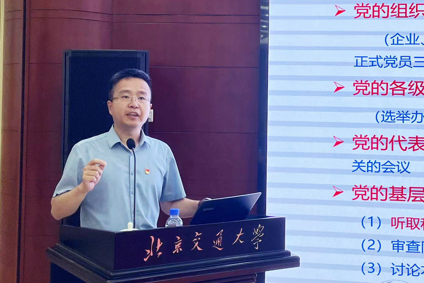 6月27日上午,后勤集团党委召开党支部书记例会扩大会议,深入学习贯彻落实中共北京交通大学第十二次党员代表大会精神。会议邀请学校办公室副主任兼政研室副主任张立学老师对党代会精神进行宣讲。会议由后勤集团党委书记马强主持,后勤集团全体党支部委员参加活动。