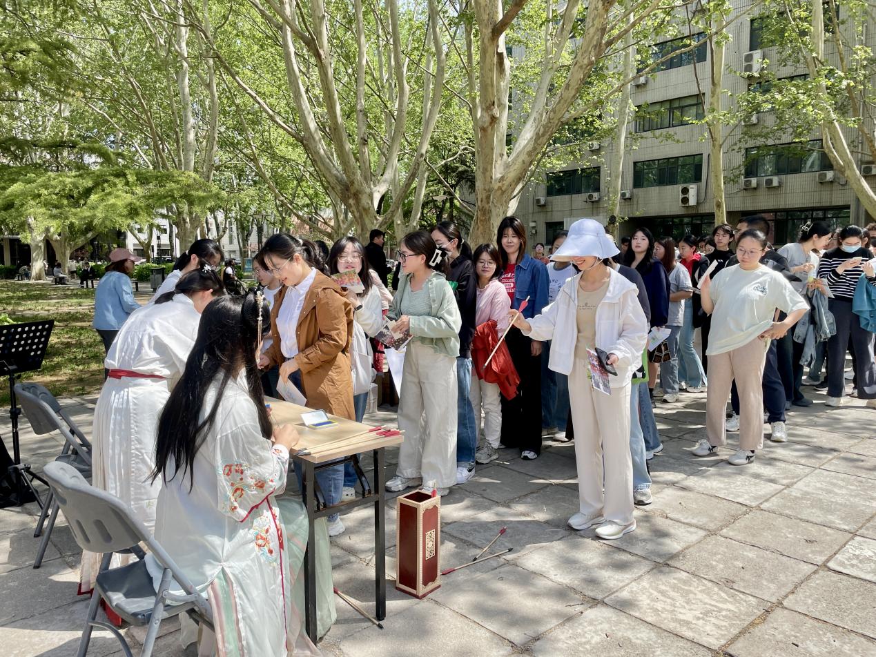 开幕式后,师生手持集章卡奔赴世纪钟广场、芳华园碧桃树下、明湖紫藤墙三大打卡点,开启春日游园之旅。师生们通过参与飞花令、投壶、看图猜诗、竹节人、海底捞珠等传统小游戏,集齐5个数字印章,获得一份精美礼品。这一环节不仅增加了游园会的趣味性,也让师生们在轻松愉快的氛围中感受到了中华文化的魅力。