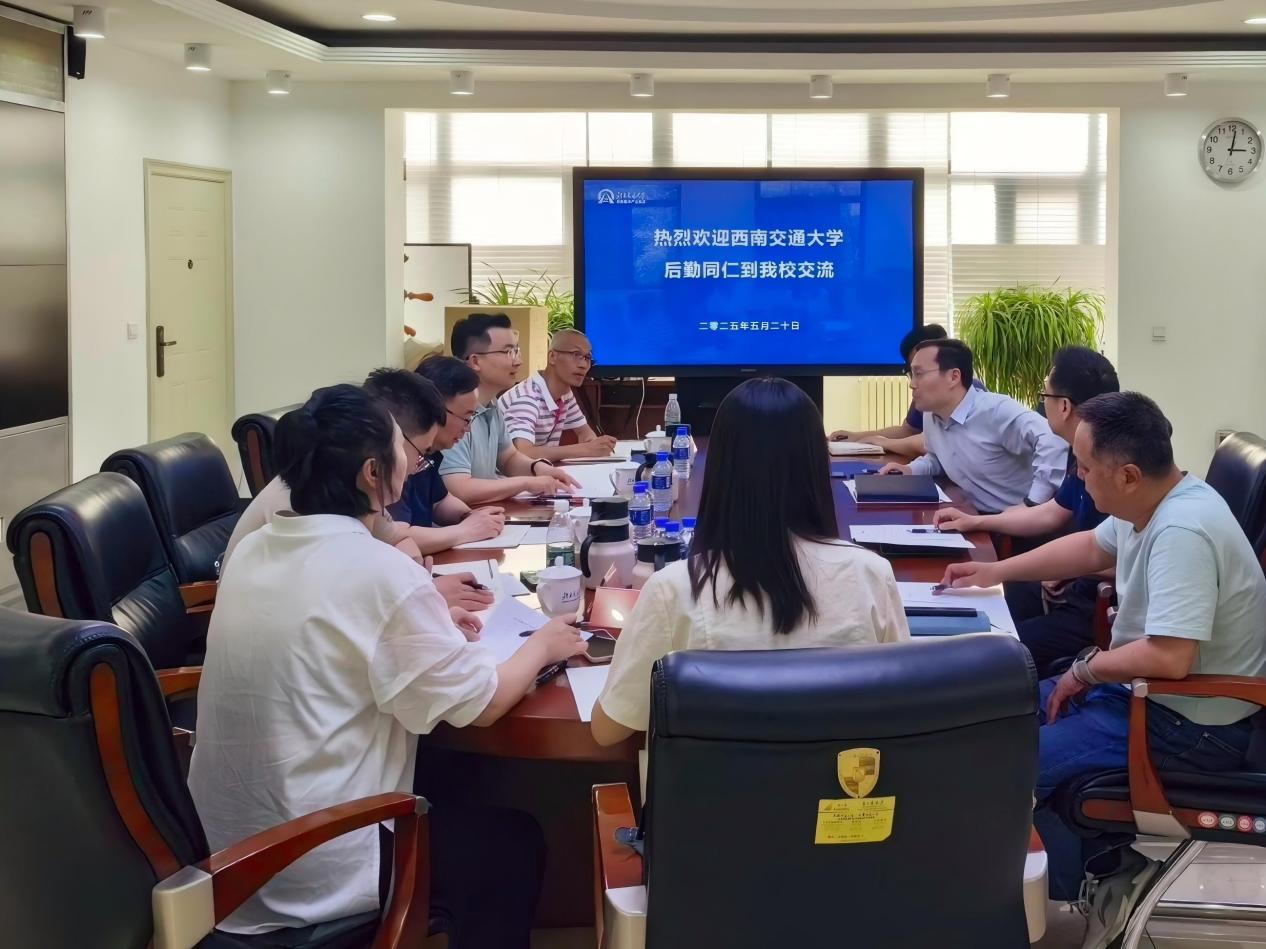 2025年5月20日下午,西南交通大学后勤保障部部长陈勇带队到我校后勤集团调研。座谈会议由后勤集团党委书记、总经理马强主持。