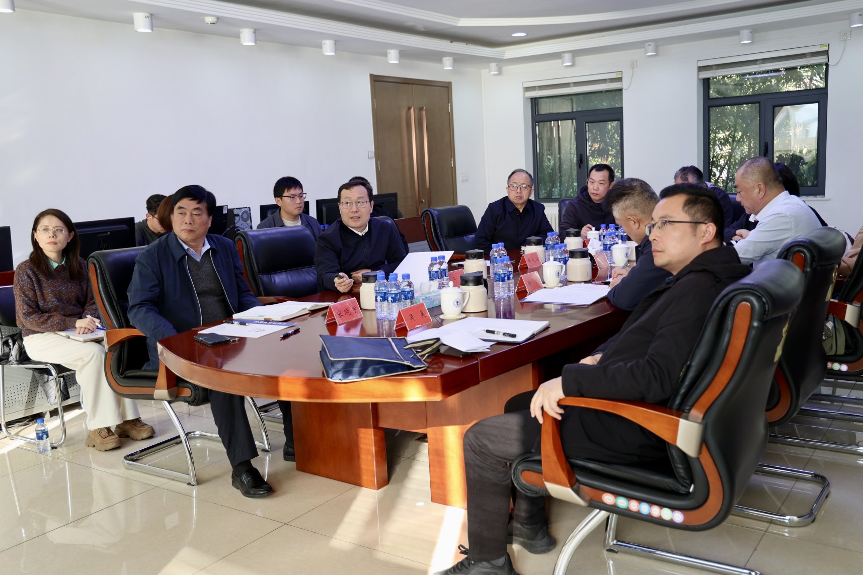 徐剑对我校的热情接待表示感谢,并介绍中共中央党校(国家行政学院)机关服务中心基本情况。双方就能源托管服务、节能改造进展、节能成果成效、项目采购方式等进行深入交流。