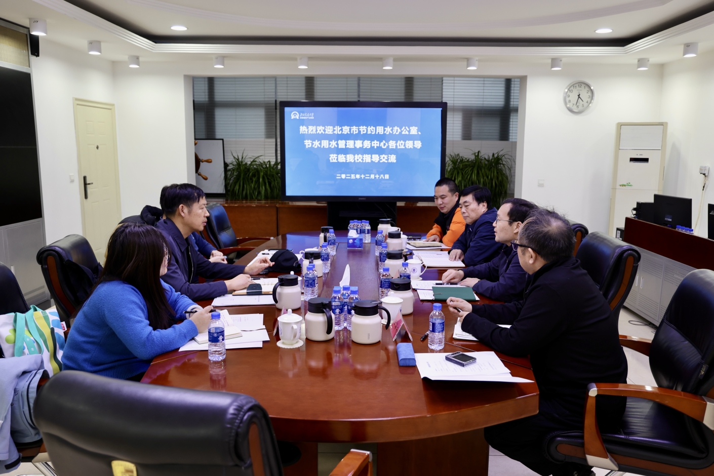 对我校的热情接待表示感谢。他围绕首都高校用水服务保障工作的总体要求,对政策背景、重点任务、核心目标等进行了全面解读,为我校后勤精准落实用水管理举措提供了明确指引。