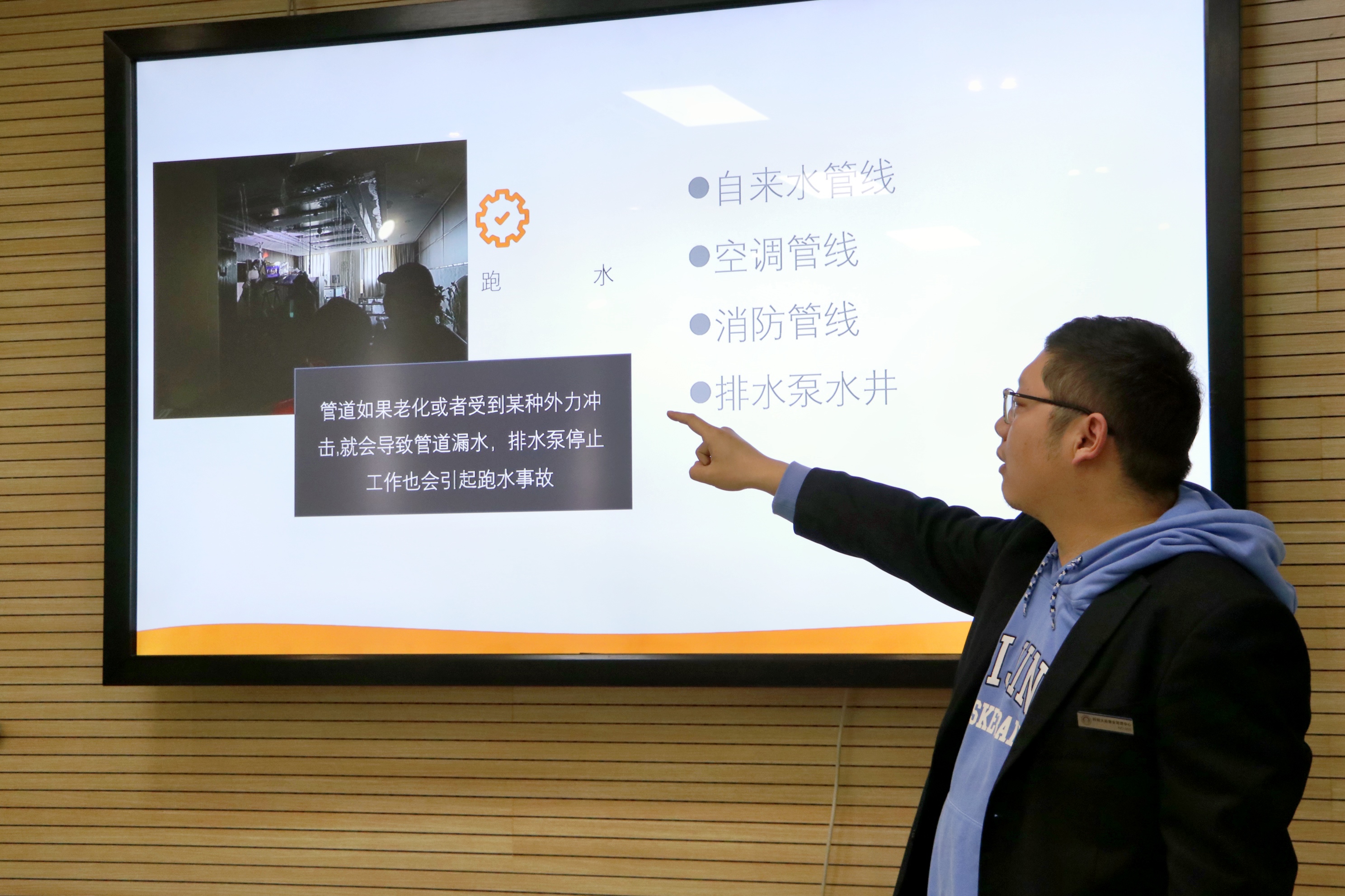 随后,在突发事件报修流程的讲解中,张浩洋根据近期节假日报修的新增注意事项、往期常见问题等,由表及里地向员工讲解水、电、车场等各类专项报修事项的处置流程,有效解决了节假日轮值期间客服部人员无法到达现场的桎梏问题,进一步提升服务品质。