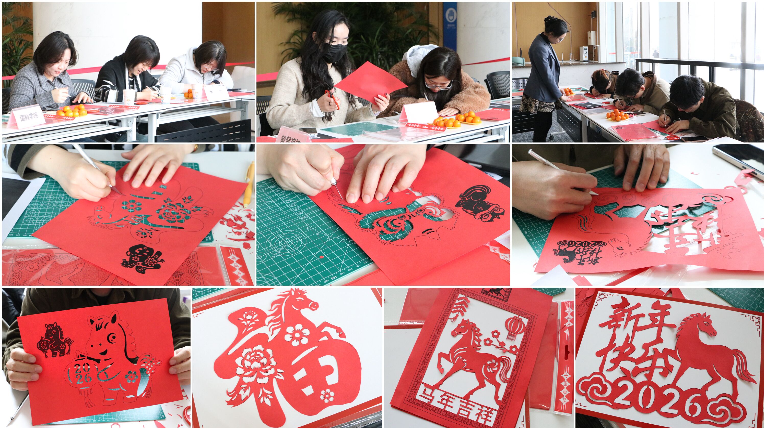 当日特色项目区人气高涨。传统剪纸体验区配备齐全材料,由中心工作人员现场指导,客户、师生或参照模板创作,或发挥创意设计专属作品。完成作品可带走装饰,参与单位还能获赠文创小夜灯,浓厚年味与感恩氛围交融。