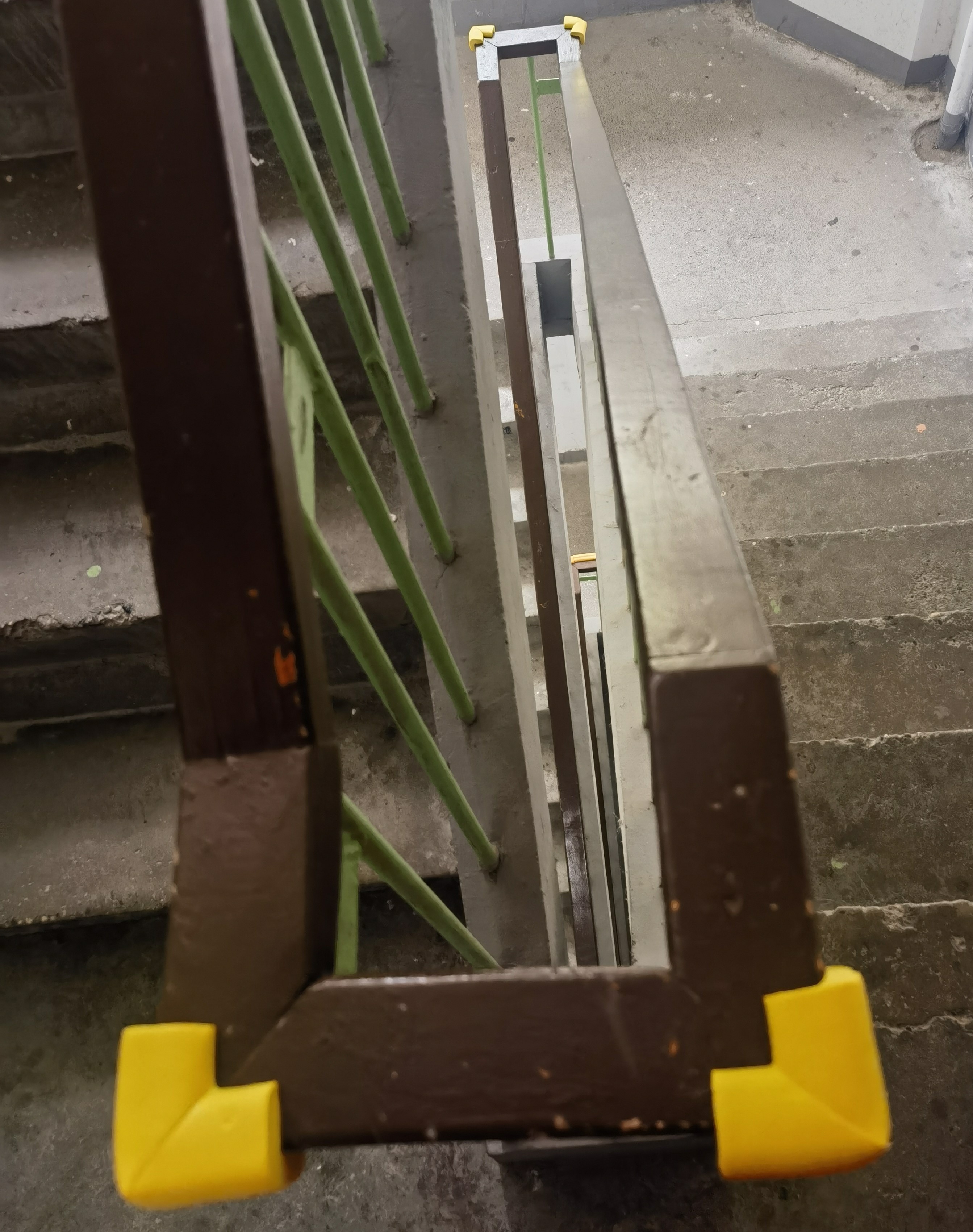 家属区物业管理中心为居民楼楼梯扶手加装防撞角