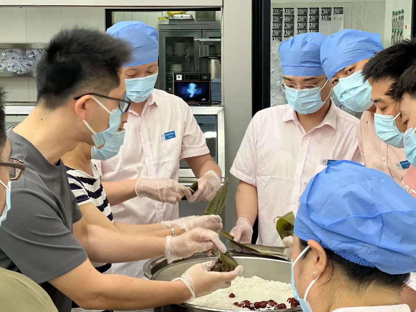大家欢聚在留园餐厅,桌子上摆满了提前泡好的粽叶和糯米,折粽叶,填糯米,放进自己喜欢的馅料,上下折叠,扎线,一个粽子包好啦!在场的所有人都跃跃欲试,学会的员工主动当起了师傅,现场教学,一双双巧手在欢声笑语中上下翻飞,大家都包的不亦乐乎。 共计40余人参加了此次活动,在不到3个小时的时间里,包了近800个粽子并分发给了中心全体员工。同时,针对未到现场的员工也通过扫描二维码参与了“端午知识问答”的线上活动。通过答题了解“端午”这一传统节日的相关知识。
