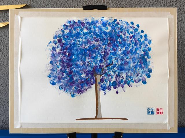 机械楼一层设置了“指纹树”打卡点,老师们用手指沾取适当颜料,在提前画好的树干上轻轻地按下指纹,不到1个小时,就有许多老师前来打卡,让“指纹树”变得枝繁叶茂。现在,这幅独一无二的“指纹树”画已经挂在了机械楼八层。是教学楼里浪漫的点缀。