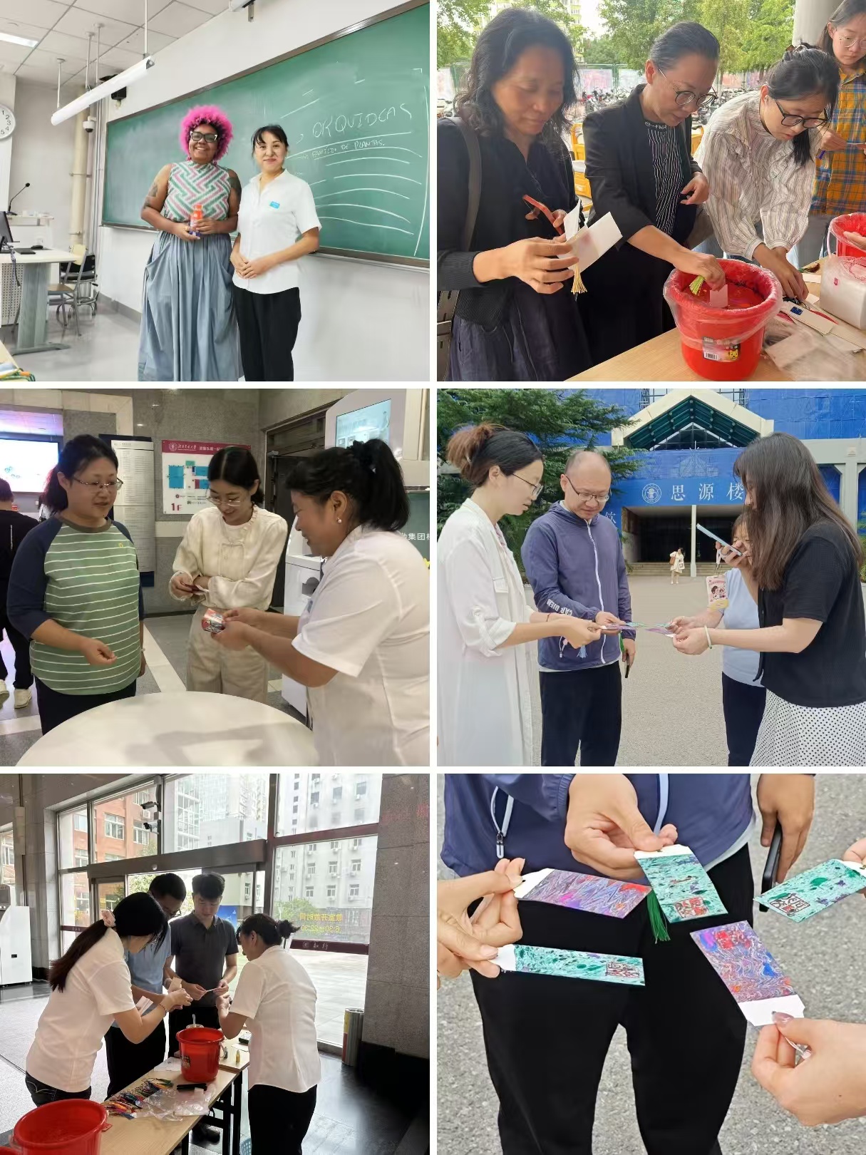 漂漆书签制作每个点位也热闹非凡,老师们挑选喜欢的书签,盖上“北交后勤”的印章,调配出自己喜欢的颜色,在水中浸染后,一张精美的书签制作完毕。书签制作现场欢声笑语,许多老师都拿着自己独一无二的书签拍照打卡、分享朋友圈。