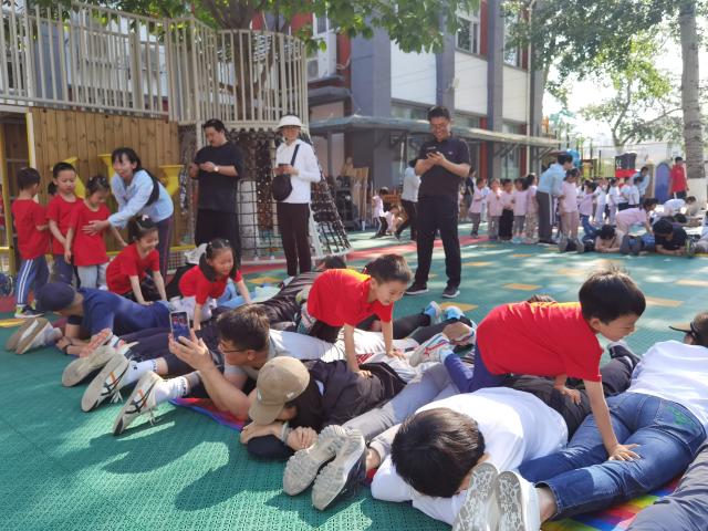 阳光灿烂,欢乐载满。5月8日,幼儿教育中心举办了“大手拉小手”亲子运动会。幼儿园全体小朋友和家长共同参与了此次活动。