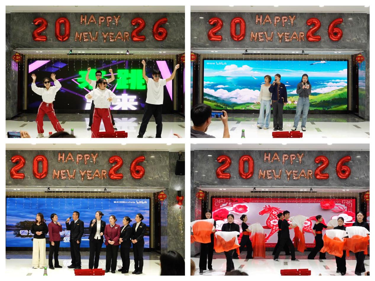 团拜会在热情洋溢的开场舞《鸣九州》中拉开帷幕。职工们以饱满的热情和多才多艺的风采表达对过去一年幸福时光的回忆和对未来的美好期许。整场文艺演出环节精彩纷呈,从深情合唱《英雄泪》到激情独唱《奔跑》,从活力舞蹈《江湖夜雨十年灯》到温馨合唱《一路生花》,15个精心创作编排的节目轮番上台,欢快的旋律展现了大家辞旧迎新的喜悦。一幕幕精彩的表演令人目不暇接,现场笑声与掌声齐鸣。互动游戏环节更是将现场气氛推向高潮。“萝卜蹲”“开心叠叠乐”“面粉搬运工”等趣味游戏接连上演,员工们在轻松愉快的氛围中增进了交流、凝聚了合力。团拜会在大合唱《伴着光的她》的温馨旋律中落下帷幕。活动结束后,全体人员在舞台前合影留念,共同迎接充满希望的新一年。