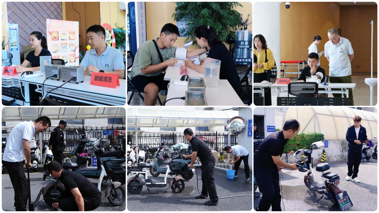 开放的固定服务区同样人气十足,冲洗自行车、电动自行车与地垫服务让大家的出行工具焕然一新,车胎打气服务解决日常出行小烦恼;清洗眼镜服务帮助大家重拾清晰视野;免费的身高、体重、血氧、血压检测则为客户健康保驾护航,每项服务前都排起了有序的队伍,大家纷纷点赞。