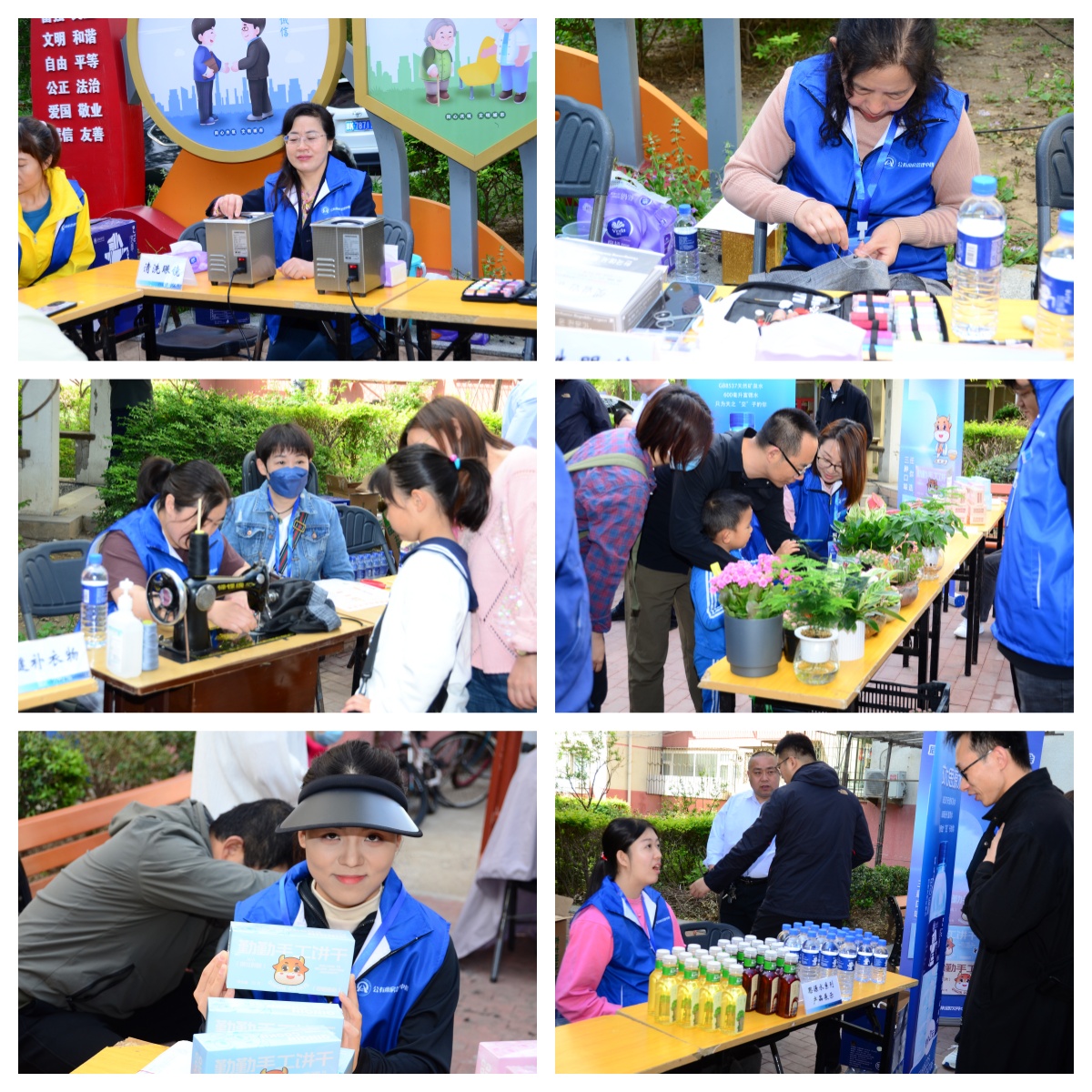 此次活动既为后勤职工免费提供理发、修理自行车、清洗自行车、打气、手机贴膜、清洗眼镜以及缝补衣物、钉扣子、绿植养护咨询等义务服务,同时,又向参加活动的服务对象展示思源水系列产品、文创饼干等系列文创产品,还开展了消防安全和反电信诈骗知识宣传。