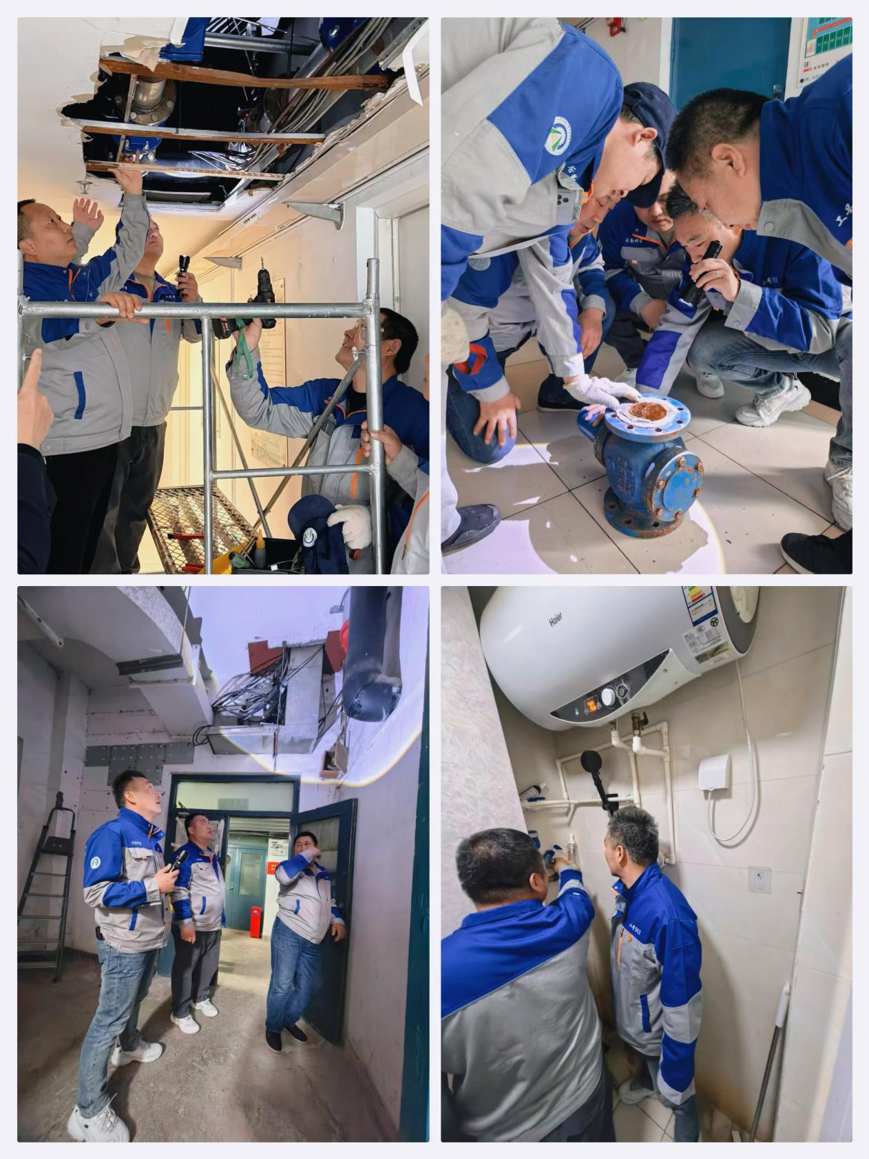 面对这一长期未解决的顽疾,修缮服务中心党员先锋队主动扛起责任、迎难而上,充分发挥党员先锋模范作用,紧急调集维修技术骨干,组建专项攻坚小组,制定详细攻坚方案。攻坚小组坚持问题导向,从市政供水入户线路起点出发,对泵房运行状态、每层横管与立管衔接、分支阀门灵敏度、过滤器堵塞情况、压力调控阀参数以及户内水表运行等所有关键节点,进行全方位、无死角排查,逐一梳理排查出的隐患点,分类施策、精准发力。