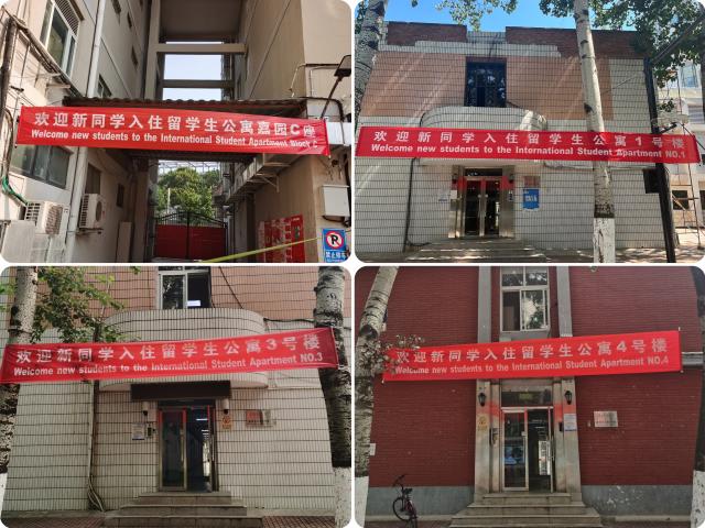 为给新生入学提供更全面的保障和更便利的服务,中心提前部署,顺利完成房间打扫、床品等物资储备及新生房间安排等开学前准备工作。4栋留学生公寓挂起条幅,迎接新生的到来。