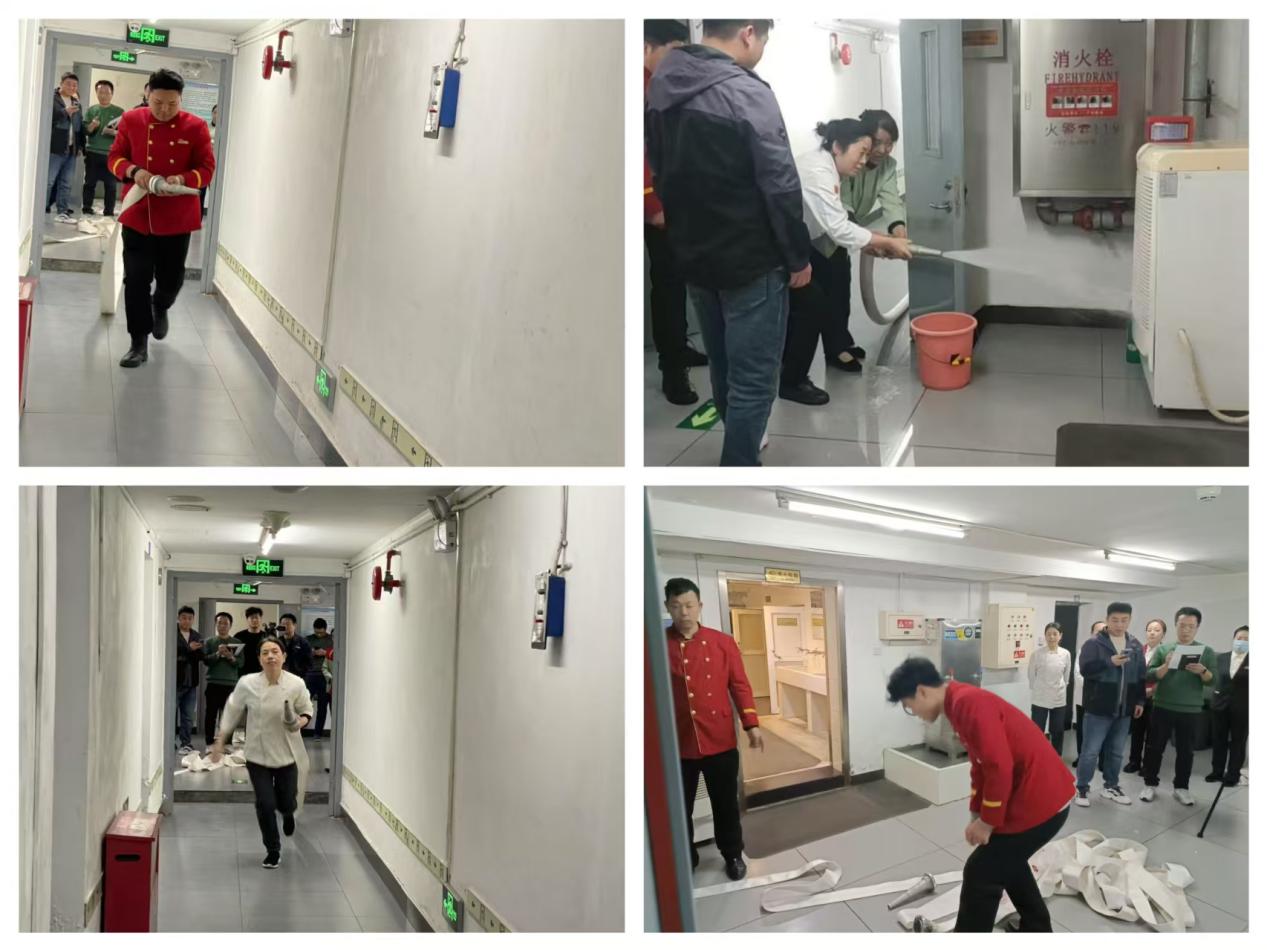 理论培训后,参训人员分组进入模拟火场。演练设置“浓烟弥漫”“设备突发故障”等复杂情境,要求员工在30秒内完成水带连接、阀门启闭、水压控制等全流程操作。保障部人员现场纠错,针对水带抛投力度不足、灭火器喷射角度偏差等问题进行一对一指导。参训员工纷纷表示,通过沉浸式实操对消防设施的使用有了更直观的认知,有效消除了“纸上谈兵”的隐患。此次演练覆盖地下室工程、安保、保洁等岗位27人,考核通过率100%,针对性强化地下空间这一重点区域的应急能力。