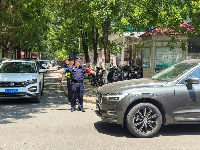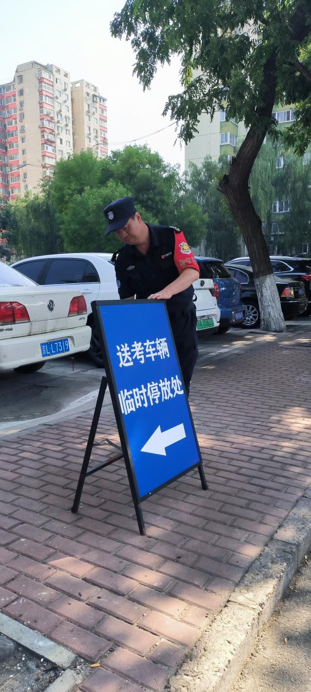中考期间,执勤保安提前到岗到位,按照定人、定岗、定位执勤的要求,加强巡逻值守力度,引导考生车辆合理停车,对考生车辆往返通行的重要路口、路段,以及考点附近的易堵路段,提前采取交通分流措施,积极为接送考生车辆提供通行便利,全力做好考点周边安全保卫秩序维护工作。
