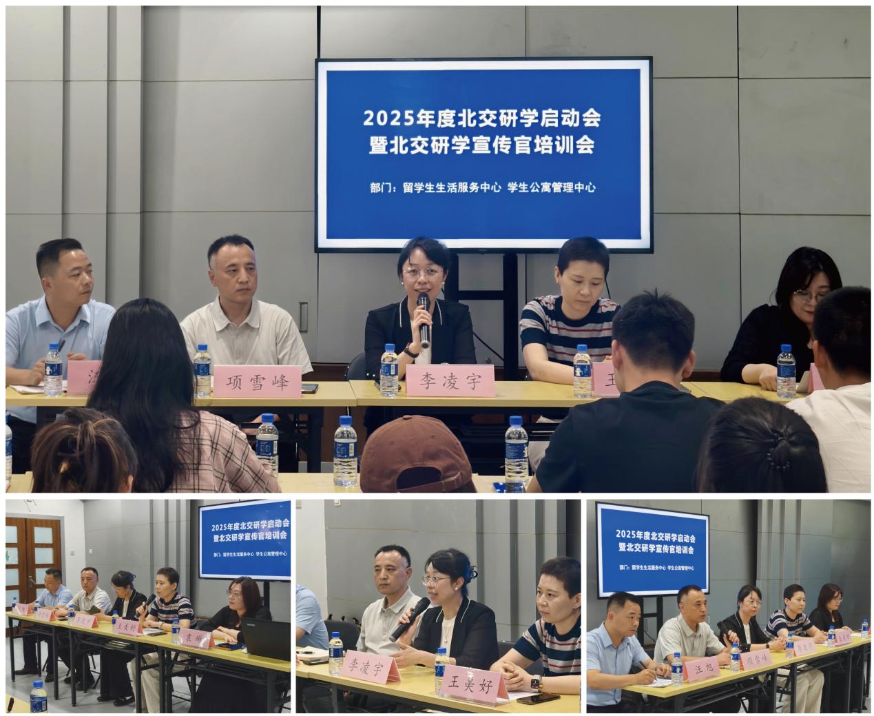 为进一步提升北交研学宣传官业务能力,确保研学项目顺利开展,7月16日,留学生生活服务中心组织开展了2025年度北交研学启动会暨北交研学宣传官培训会。会议由留学生生活服务中心副主任袁琳主持,后勤集团副总经理李凌宇、留学生生活服务中心主任王美好、学生公寓管理中心主任项雪峰、副主任汪旭出席。
