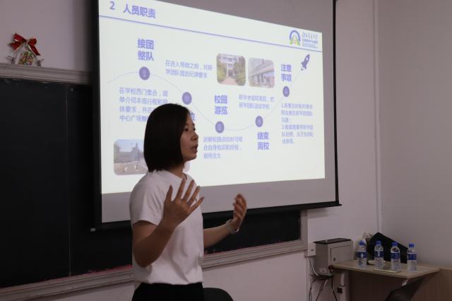聘任仪式结束后留学生生活服务中心主任王美好为全体人员进行了专项培训,现场由2023年研学工作人员郑泽雯详细讲解了研学宣传官的工作内容、注意事项以及工作流程,并进行了答疑环节,大家积极参与、踊跃提问,对研学工作有了更深的认识。