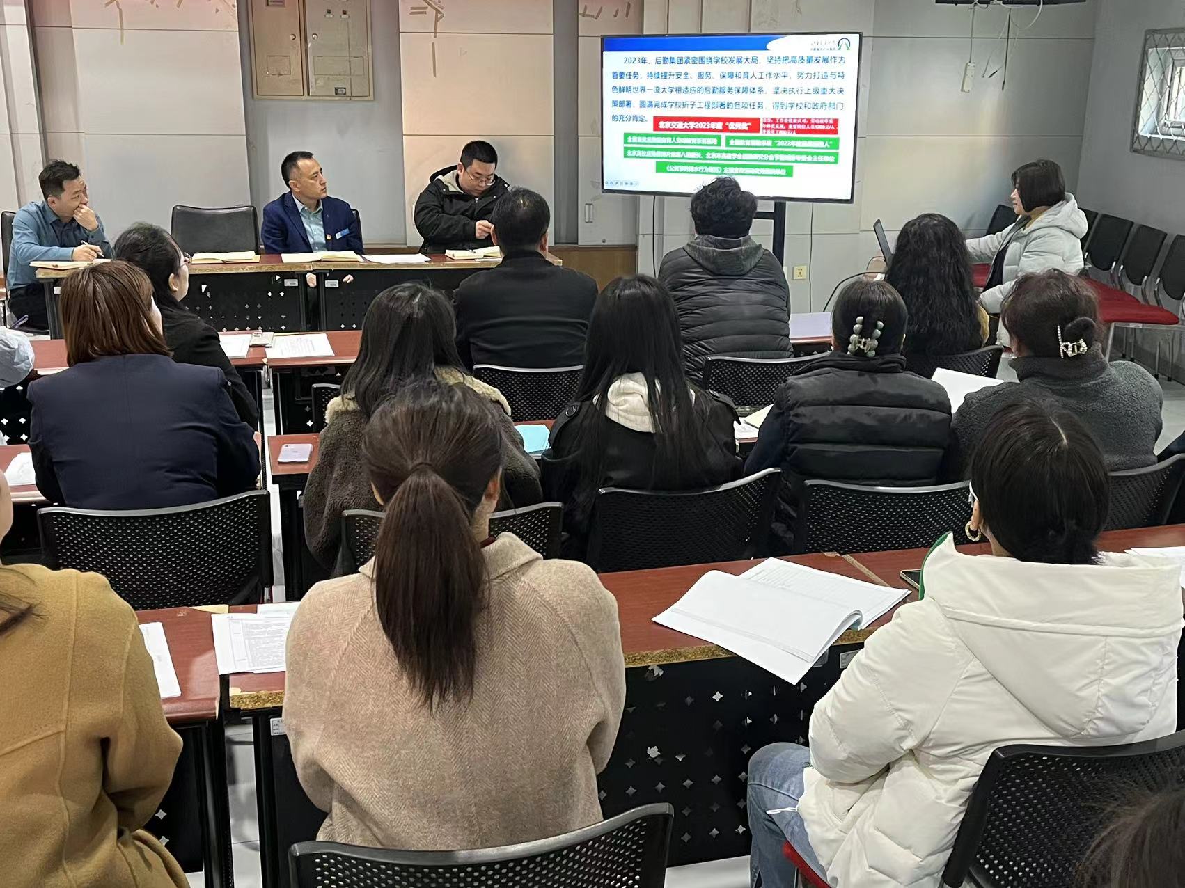 副主任田芳就后勤集团2024年度工作报告作深入解读。她结合中心实际工作需要,重点解读北交后勤愿景、使命和价值观,多维度阐述了作为一名北交后勤人的责任与担当。深入分析了中心当前党建工作与业务工作深度融合机制,推进“三全育人”体系,激发中心创新活动,不断丰富后勤育人的载体和形式。积极引进节能节水新技术,加强绿色校园建设。