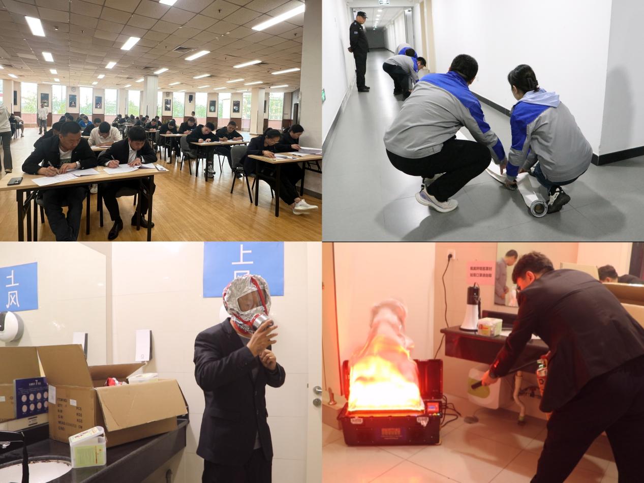 报名阶段,各中心积极参赛,吸引了集团13个中心、16支队伍、64人同场竞技。比赛分为笔试与实操两大部分,笔试环节涵盖单选题、多选题、简答题多种题型,全面考查选手对消防法规、集团制度、器材原理、逃生知识等内容的掌握程度;实操环节包含安全隐患排查、初期火灾处置两方面内容,重点检验选手在模拟真实场景下的应急处置流程和实操能力。