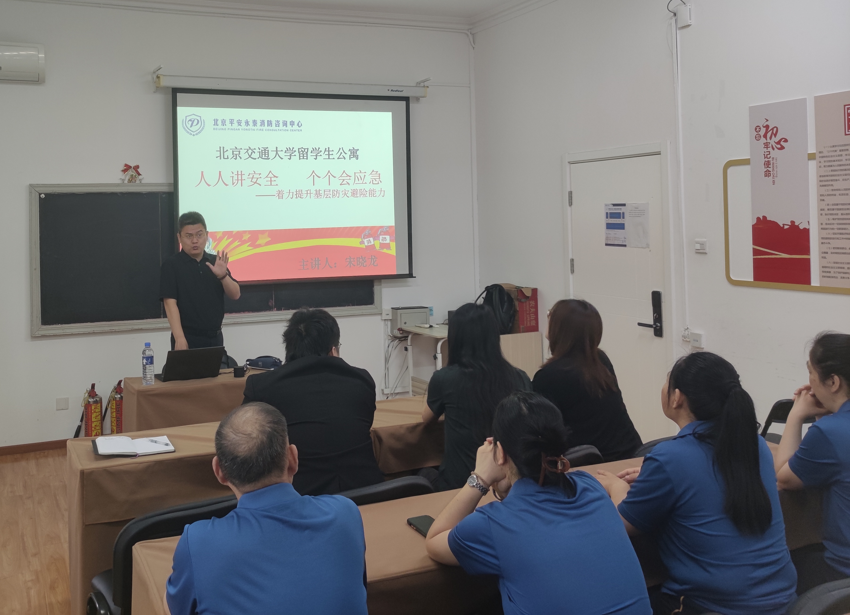 中心副主任袁琳为大家介绍了本次培训课程的主讲人宋晓龙,并强调安全是公寓管理的头等大事,必须将消防安全放在工作的首位。