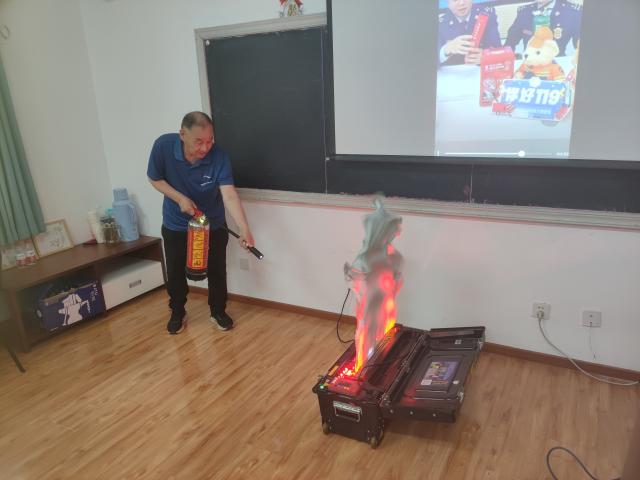 宋老师结合大量真实案例,围绕火灾的起因和危害、火灾隐患的排查和日常管理、初起火灾的扑救措施、消防器材的使用、提高火场逃生自救能力及消防应急预案的制定等几大方面展开讲解,并为大家现场演示灭火器的正确使用方法。