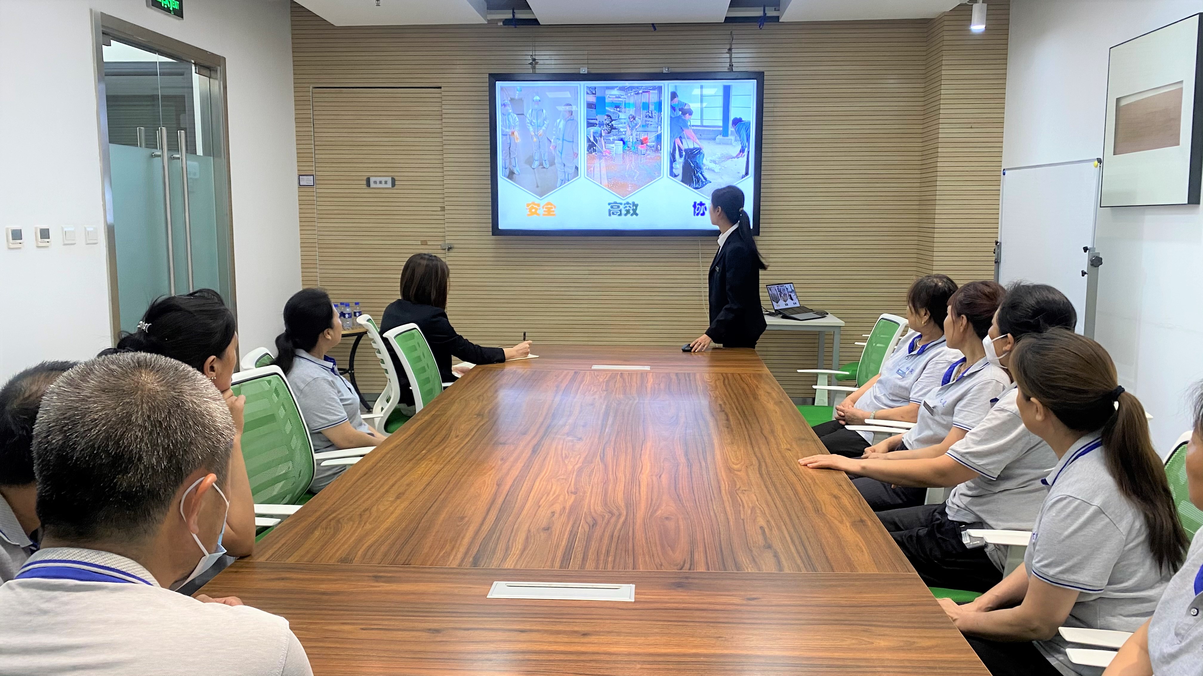 培训结束后,相关部门代表就部分工作内容与保洁部进行了积极沟通交流,保洁部也将据此推动工作的进一步优化。最后,物业部经理王美好指出,保洁部员工作为中心冲在一线的主要力量,一直秉持着不怕苦、不怕累的精神,特别是在疫情期间和突发事项中都能以专业服务水平圆满完成任务,希望大家能够永葆敬业精神,不断提升职业素养,紧跟集团、中心步伐,将禁烟、节能等长效工作有机融入保洁日常工作中,共创佳绩。