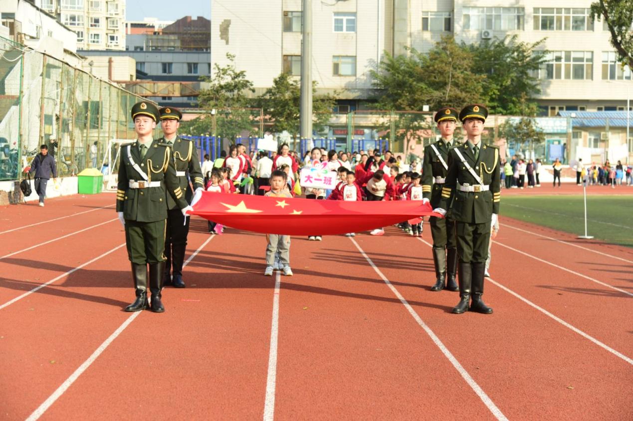 待所有队伍有序移步至指定场地,激昂的国歌准时奏响。现场全体师幼、家长即刻肃立,目光坚定地望向国旗,以标准的注目礼表达对祖国的崇敬。这一刻,爱国的种子在孩子们心中悄然扎根,运动的激情与家国的情怀在操场之上交融共鸣。
