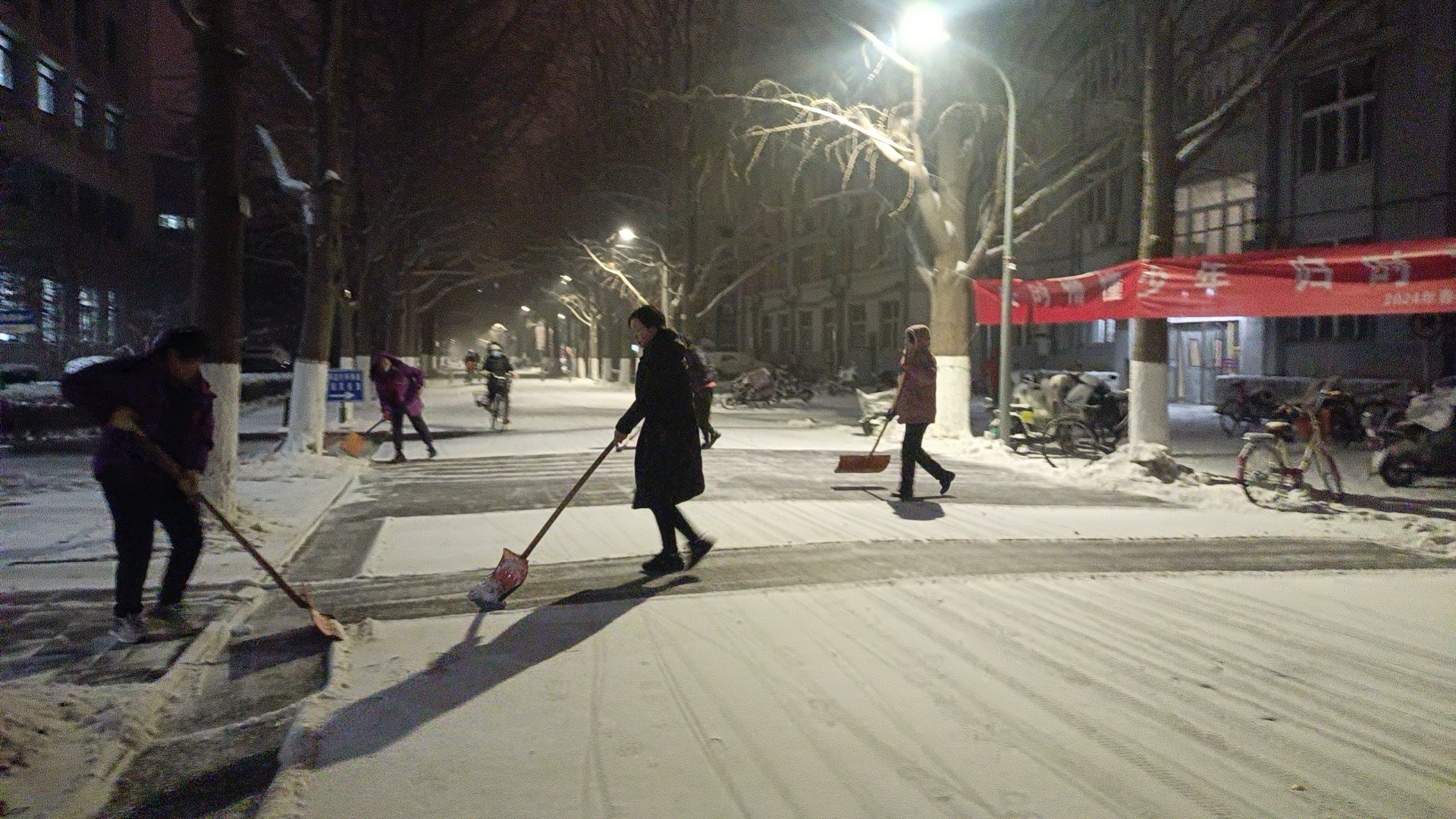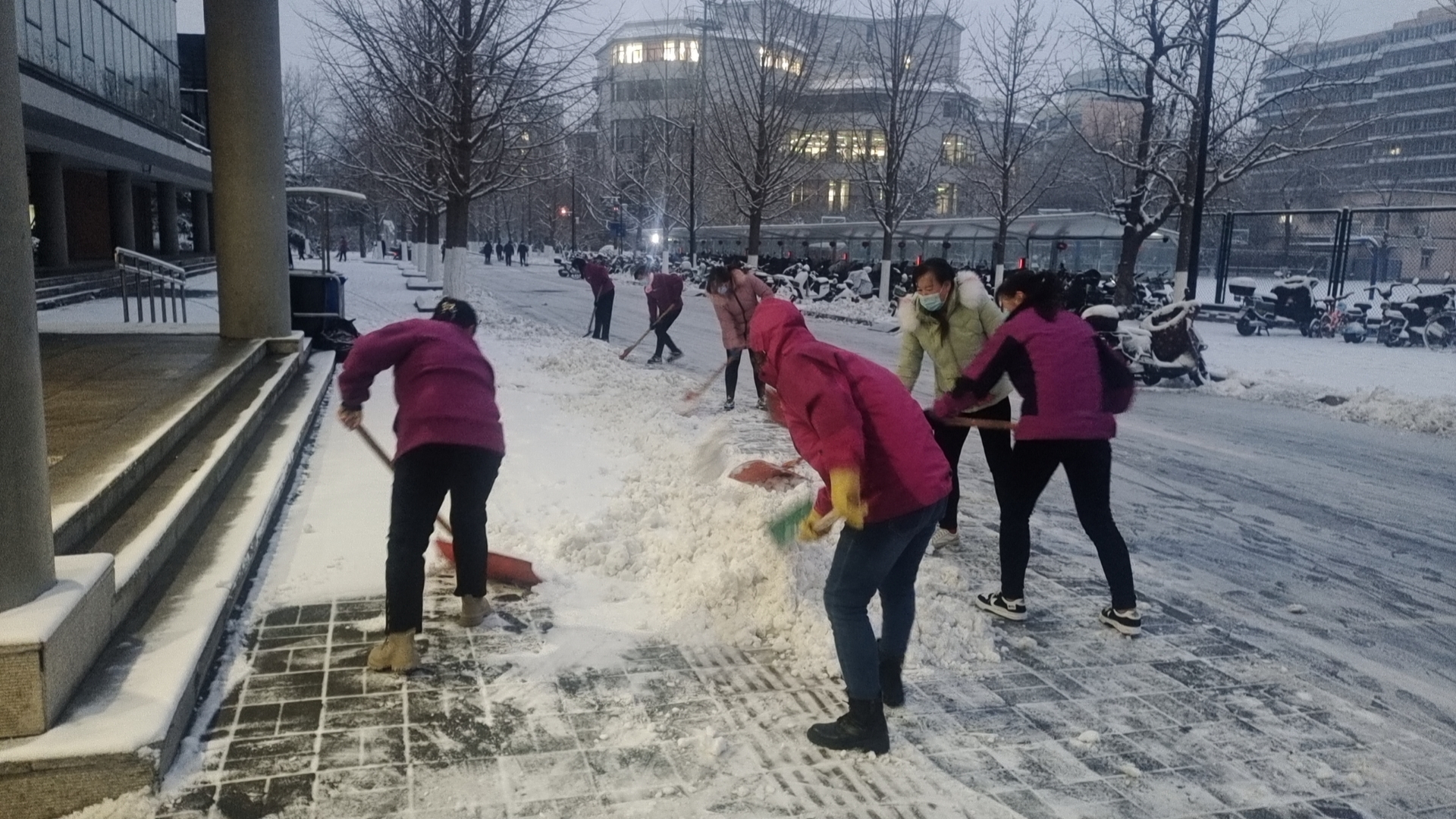 初雪映初心,道路畅通不单单是师生出行的便捷与安全,更是一份温暖与责任。楼宇人以实际行动展现出团结协作、甘于奉献的精神面貌,在冬日严寒中传递出丝丝温暖和满满的正能量。(唐俊菲)