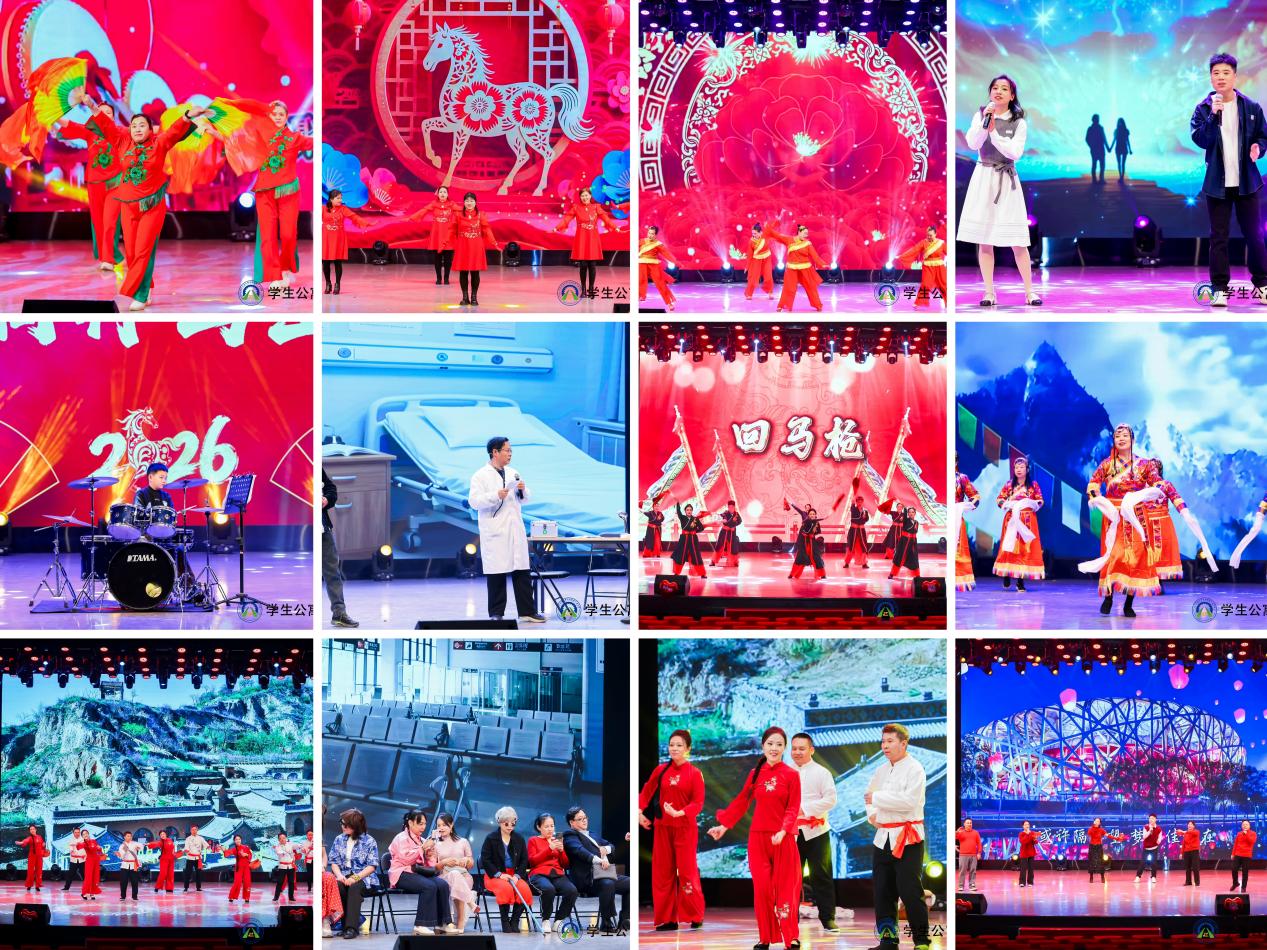 伴随着《欢聚一堂》《开门红》等喜庆开场舞,联欢会正式拉开帷幕。“星火熠熠,暖寓小家”篇章里,男女合唱《素颜》、架子鼓串烧《预谋+云宫迅音》、小品《霸总看病》轮番上演,温情与笑点交织;“同心灼灼,聚力大家”篇章中,歌伴舞《为你跑成罗圈腿》、哑剧《一颗钉子》、戏曲联唱、舞蹈《洗衣歌》等尽显多元风采;“征程浩浩,荣耀公寓”篇章里,歌曲《相亲相爱》、情景剧《团队的力量》、非洲鼓《战马》点燃全场热情;“情怀昭昭,筑梦家国”篇章中,群舞《灯火里的中国》、诗朗诵《我爱你!中国》将家国情怀推向高潮。