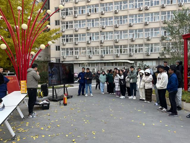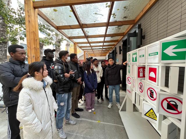 演习开始前,留学生们前往保卫处“消防实训平台”观摩学习,对火灾发生原理、基本灭火器材、火灾隐患识别、电动车火灾案例、常见消防标识等进行了深入了解和体验,进一步增强了自身的火灾防范意识。
