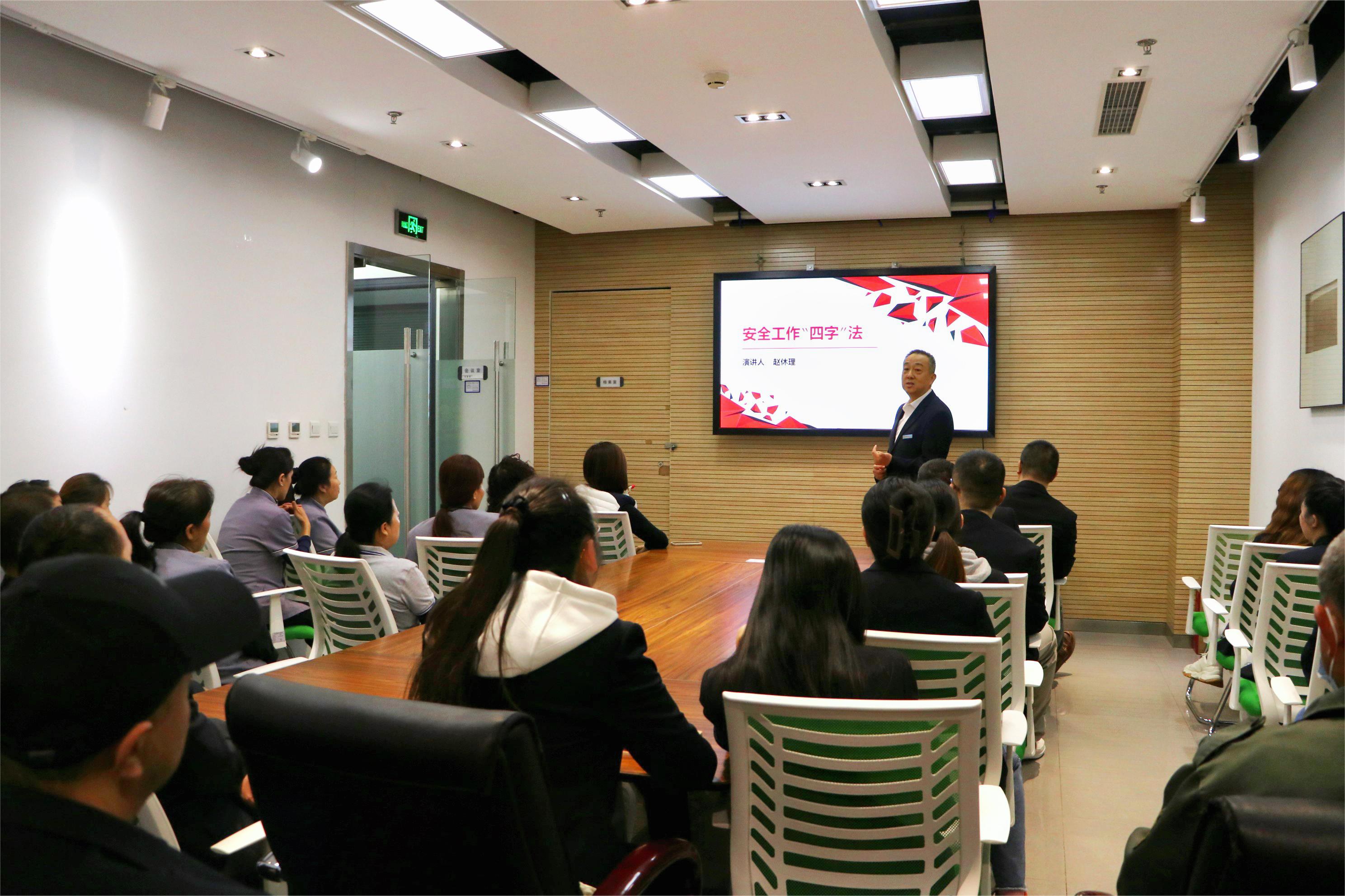 安保部负责人赵休理深入浅出地讲解了消防安全对于日常工作、生活的重要性,并现场互动提问“一懂三会四个能力”。他根据安全工作“四字”法,从扑救火灾、消火栓使用、灭火毯、灭火器及自救呼吸器使用等板块切入,采用图文并茂的方式,将如何救火、如何使用灭火器具、遇到火灾时如何自救与他救等进行了全面讲解,通过理论与现实案例的观看让员工生动形象的理解与学习。