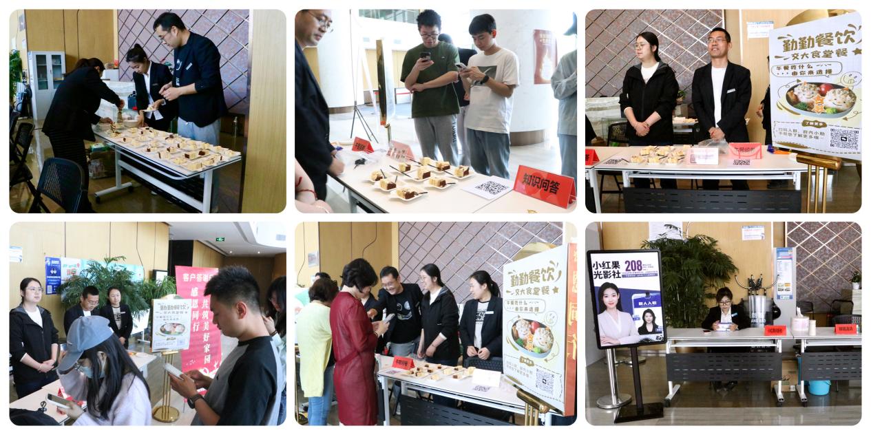 互动体验强联结,文化赋能添色彩。勤勤餐饮“午餐问卷”调研甜品分享区,客户通过扫码填写勤勤午餐线上问卷,为勤勤餐饮优化建言献策,同时可品尝由交大食堂提供的美味蛋糕,在甜蜜中传递信任与支持。楼宇服务管理中心小红果光影社倾情助阵,在活动现场设立专属摄影展区,致力于用专业镜头、专业服务为师生、客户留住美好瞬间。