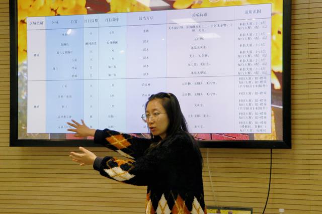 面向保洁员依次开展的系列培训,正是源自师生、客户在楼内舒适、整洁的科研、办公环境需求,促进中心不断提升保洁队伍的综合素质、服务水平和质量,持续推动一线保洁员把专业的知识和优质的服务带到客户身边,为构建美好校园做出积极贡献。(刘子钰)