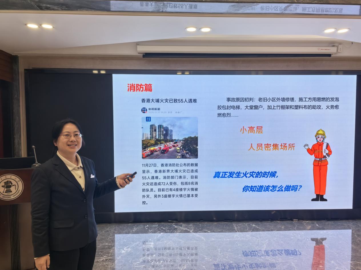 本次培训紧扣中心日常运营中可能面临的安全风险,内容覆盖消防、急救、治安防范三大核心模块,旨在将“安全第一,预防为主”的理念深植于每位员工心中。中心副主任陈艳首先结合近期典型火灾事故,深入剖析“小隐患引发大事故”的教训,强调“预防优于扑救”的重要性。随后围绕消防“三懂、四会、六熟悉”核心知识,并结合中心独特的建筑布局,详细讲解岗位火灾危险性、初期火灾扑救要点、疏散引导流程等内容。此外,培训还详细梳理了火灾发生时的应急预案与各部门的应急响应职责,确保一旦险情发生,各部门能够职责清晰、联动有序,将损失降至最低。