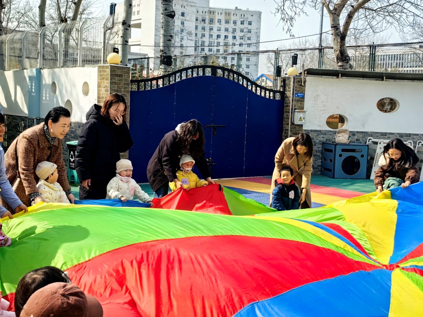 活动以幼儿园操场、苗苗班教室为场地,精心设计户外器械体验、彩虹伞亲子游戏、甜甜圈美工创作等趣味环节。党员教师全程耐心引导,指导家长与幼儿高效互动,既让幼儿在游戏中锻炼大肌肉与精细动作能力,也帮助家长掌握科学回应式照护的实操方法。温馨童趣的环境、丰富多元的内容、井然有序的流程,获得家长一致好评,让幼儿沉浸其中、流连忘返。