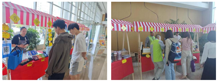 外面骄阳似火,大厦内清凉舒适。活动现场的产品受到了大厦师生与顾客的喜爱,北交特色产品带来了学校的温暖;夏日清凉产品冰凉贴、冰袖等送来了丝丝凉意;休闲小零食让工作学习之余得到片刻的放松;另外还有奶制品、能量饮料等30余种商品,各摊点都吸引着过路的师生、顾客驻足挑选。