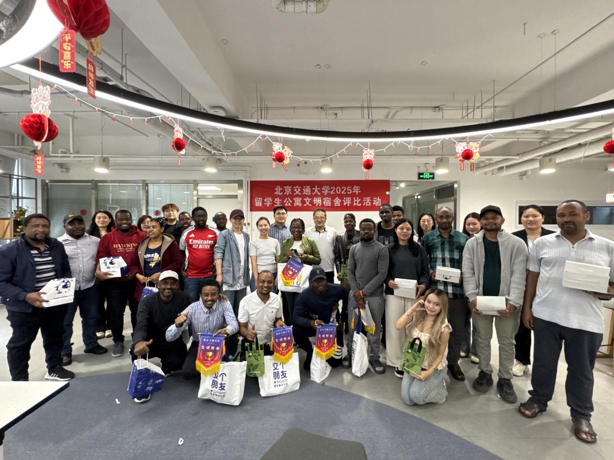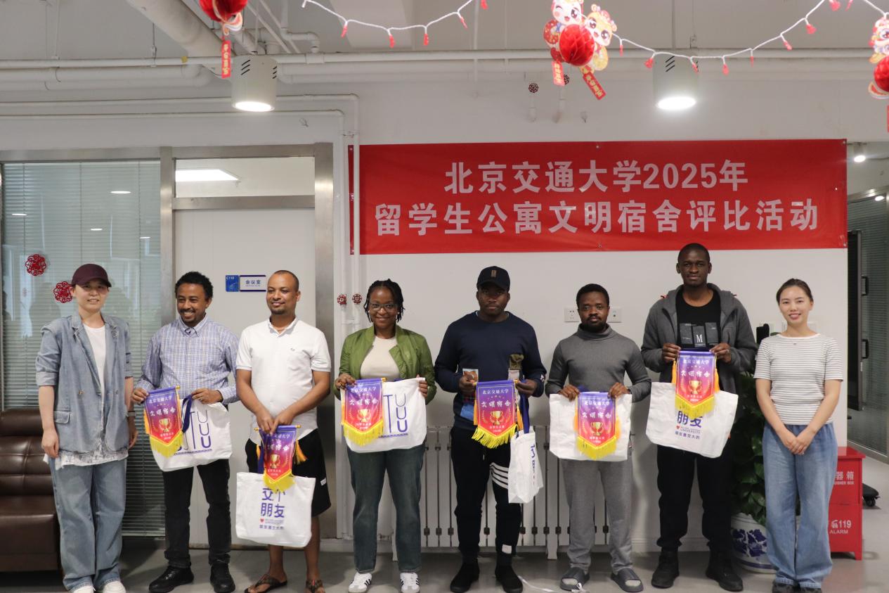经过激烈的角逐与严格的评选,最终有6个留学生宿舍获评2025年度留学生文明宿舍荣誉称号,国际教育学院学生办公室主任熊青杨和留学生生活服务中心主任王美好分别为获奖宿舍学生颁发文明宿舍锦旗及交大文创奖品。获奖的留学生们脸上洋溢着喜悦的笑容,纷纷表示此次活动让他们感受到了家的温暖,也收获了珍贵的友谊。