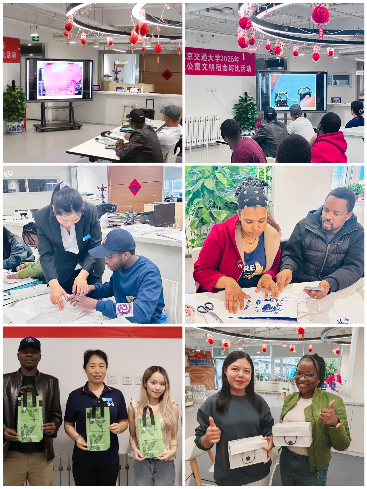 活动初期,文明宿舍评选活动率先拉开帷幕。留学生生活服务中心和国教学院老师成立了宿舍评审小组,依据严格的评分标准,对每一间参与评选的宿舍进行细致检查。评选过程中,评审们关注地面、桌面、床铺等各个角落的清洁程度,着重检查宿舍用电规范和安全隐患,鼓励留学生们发挥创意,将各自国家的特色文化元素融入宿舍布置中。一间间宿舍各具特色,有的用精美的挂饰装点墙面,有的摆放着非洲特色的手工艺品,每一处细节都彰显着留学生们对宿舍的用心,也成为了多元文化交流的小小窗口。