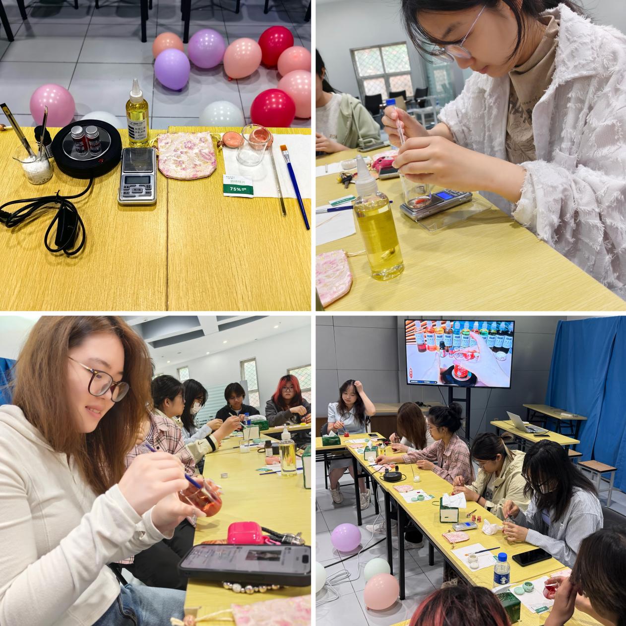活动开始,主持人高佳老师向同学们阐释了古法胭脂在传统美妆文化中的核心地位。体验环节,老师现场演示植物油与蜂蜡熬煮、过滤成型等古法工序。制作过程中,学生与老师们热烈交流,不仅分享创作心得,更就公寓管理提出建议,为服务优化注入青春智慧。活动最后,学生们拿着手中的成果互相交流展示,并纷纷表示希望以后能多举办此类活动。