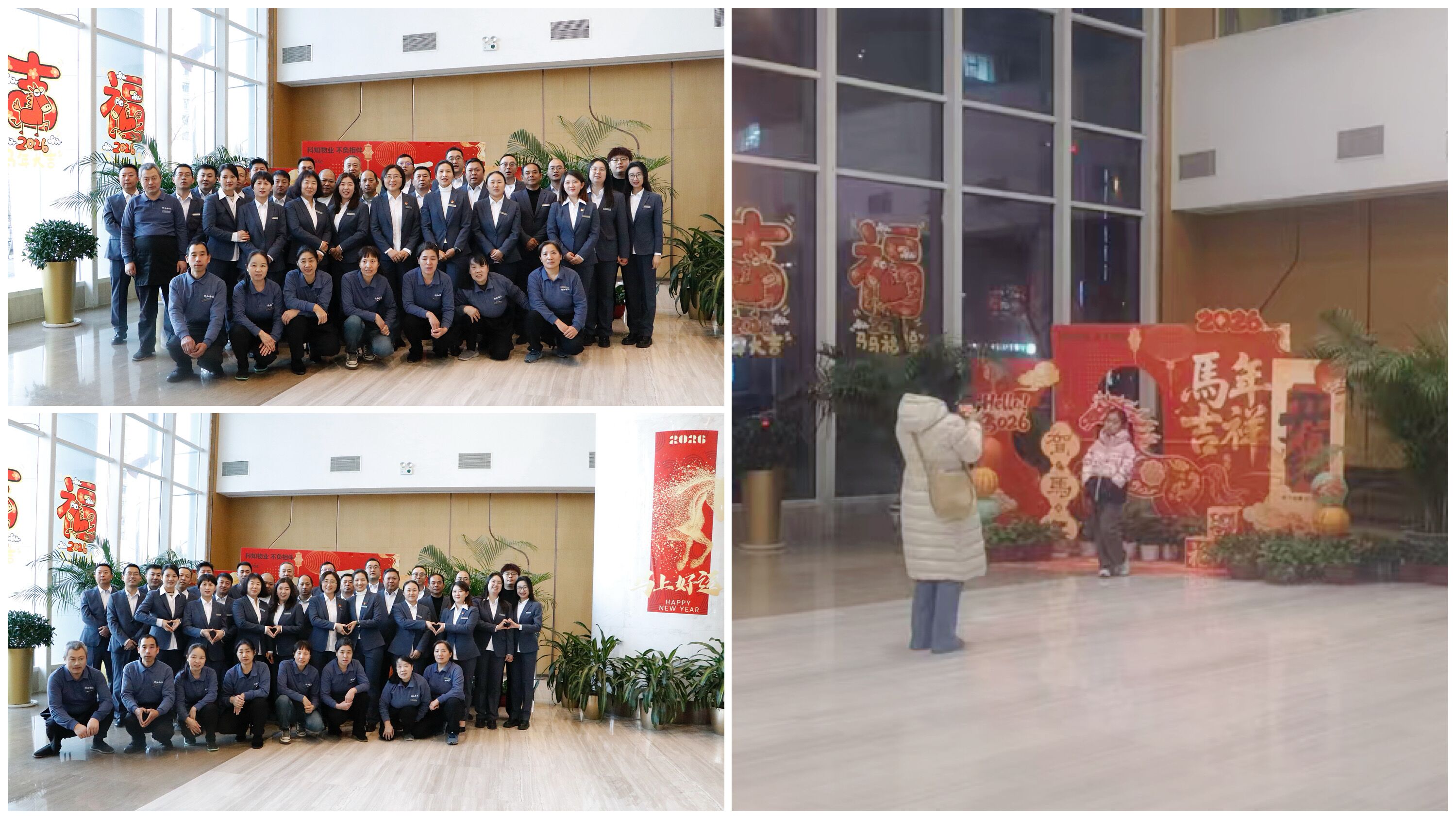 历经数小时的精心布置,科知大厦焕然一新,一步一景皆含年味。布置工作完成后,科知大厦物业管理中心全体员工齐聚新春打卡布景区,定格下一张温馨满满的新年合影。镜头前,大家笑容洋溢、精神饱满,不仅定格了团队协作的温暖瞬间,更寄托了对新一年的美好憧憬。